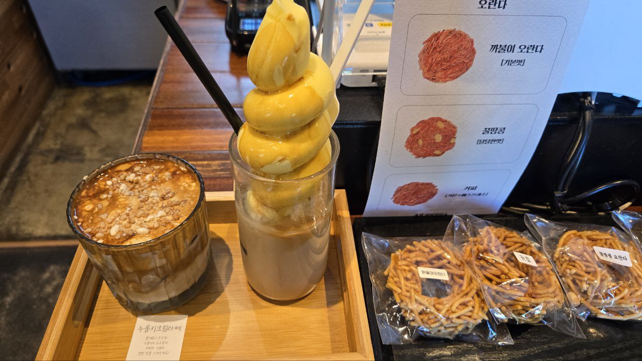 - 누룽지크림라떼: 고소한 누룽지 풍미가 커피와 어우러져 독특한 맛.