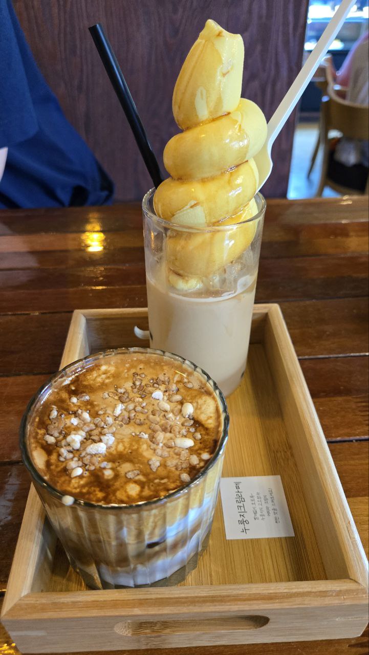 저는 이번에 누룽지크림라떼와 옥수수아이스크림라떼를 주문했어요.