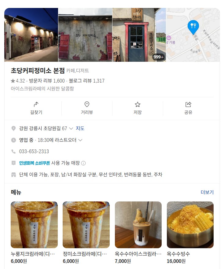 👉 강릉 여행 중 인테리어도 근사하고 특별한 맛을 느낄 수 있는 카페를 찾는다면 초당커피정미소를 추천드립니다.