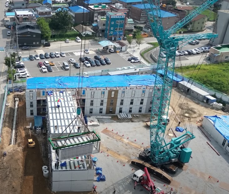 인천 강화도에 건설된 ‘강화신문 모듈러 아파트’는 총 130세대 규모의 공동주택입니다. 놀라운 점은 철근 콘크리트가 아니라 공장에서 미리 만들어진 ‘모듈’을 현장에서 쌓아 조립하는 방식으로 지어졌다는 점이에요.