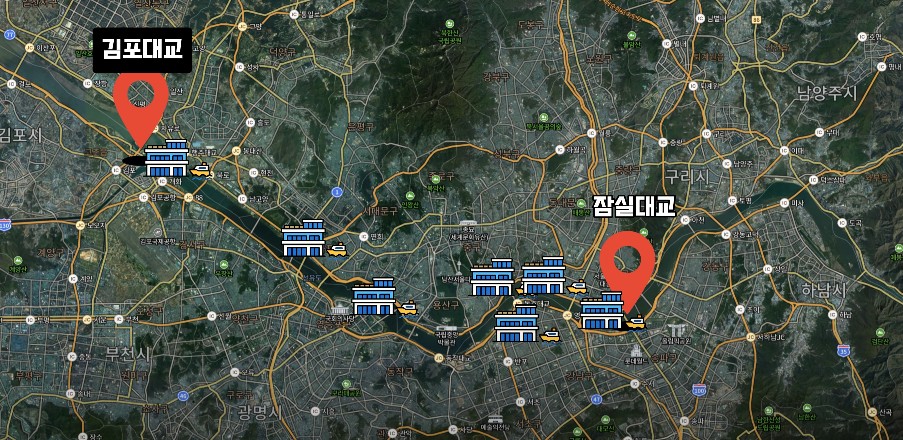 한강 수상버스는 김포대교부터 잠실대교까지, 약 31.5km 구간을 운항합니다. 총 7개의 선착장을 들르며 서울의 중심을 가로지르죠.