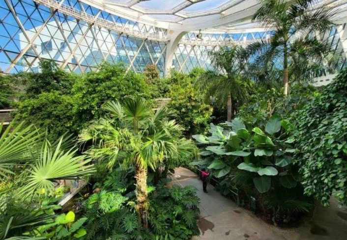 식물원의 메인 공간인 전시 온실에 도착하자마자 반겨준 건 바나나나무(!)였습니다. 사실 바나나나무는 나무가 아니라 초본, 즉 풀이라는 사실, 알고 계셨나요? 초록빛이 가득한 이 공간에선 식물 관리사님들이 가지치기와 병해충 예방을 위해 부지런히 움직이고 계셨습니다. 바나나, 선인장, 제라늄 등 세계 각국의 식물이 살아 숨 쉬는 공간, 그야말로 도심 속의 작은 지구 같았어요.