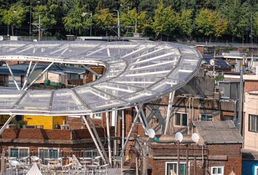 특히 주목할 건축 프로젝트가 있었는데, 바로 **‘클라우드(서울층)’**입니다. 낡은 슬레이트 지붕 대신 투명한 막을 덮어 비는 막고 빛과 바람은 통하게 만든 건데요. 멀리서 보면 구름처럼 보여서 ‘클라우드’라는 이름이 붙었죠. 덕분에 시장 내부는 밝고 쾌적해졌고, 이 건축물은 2024년 서울시 건축상 대상까지 수상했습니다.