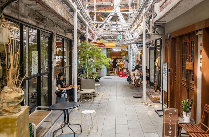 낡은 건물 아래 들어선 건 이제는 트렌디한 카페와 개성 넘치는 식당입니다. 빈티지한 골목 분위기와 현대적 감각이 어우러져 마치 유럽의 작은 마켓을 걷는 듯한 느낌을 줍니다.