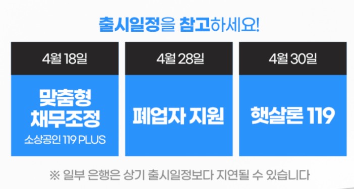 맞춤형 채무조정,폐업자 지원, 햇살론 119등