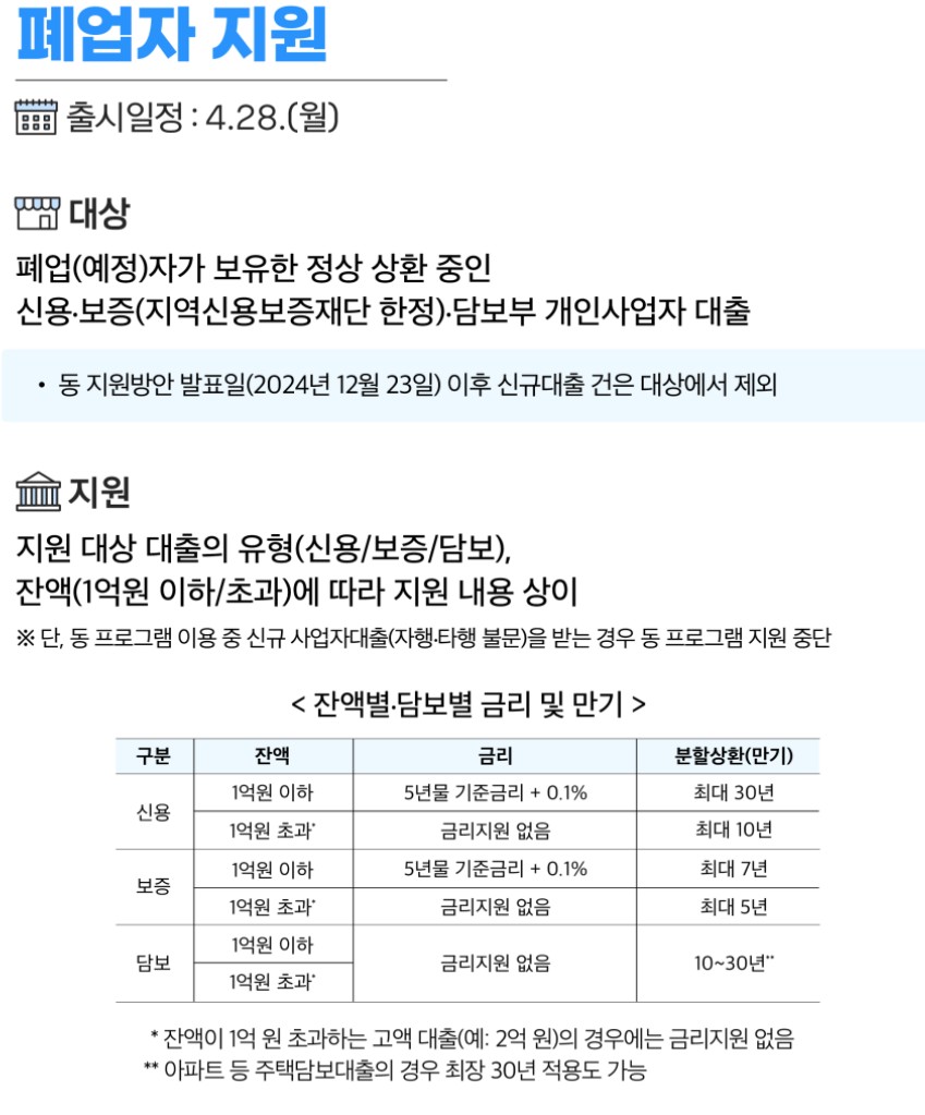 -개인사업자는 최대 5천만원,법인은 최대 1억원의 신규 사업자금을 지원