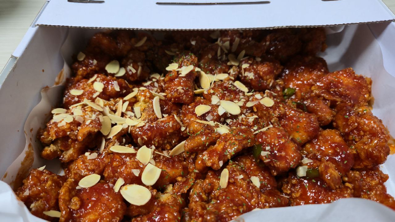“한 통 더 살까…?” 고민하게 만드는 마성의 닭강정입니다.