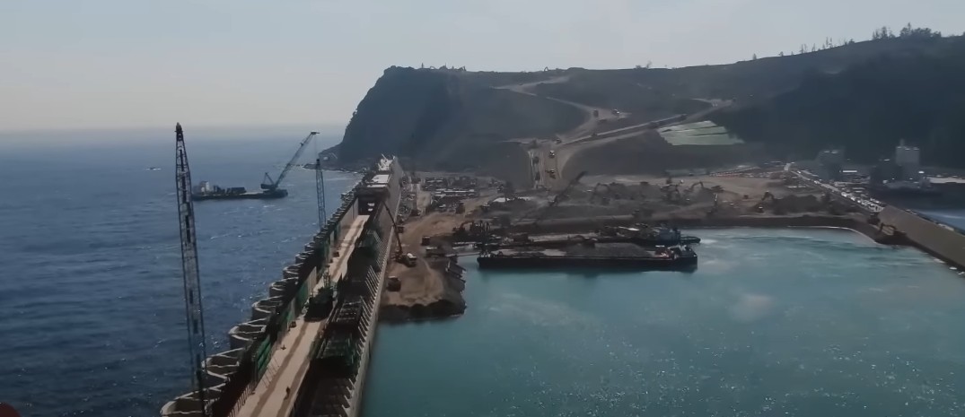 바다 위에 12층 아파트 높이(28m), 무게 16,400톤에 달하는 콘크리트 구조물(케이슨)을 띄우고,