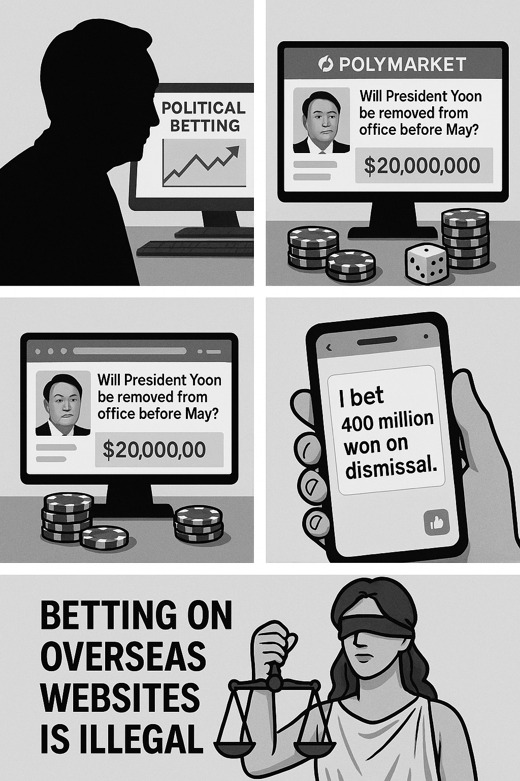 최근 윤석열 대통령 탄핵 심판과 관련해 해외 배팅 사이트에서 200억 원이 넘는 판돈이 걸린 도박이 벌어지고 있어 논란이 되고 있습니다. 특히 일부 한국인들도 여기에 참여하고 있는 것으로 드러났습니다. 하지만 해외 배팅 사이트를 이용한 도박은 명백한 불법입니다.