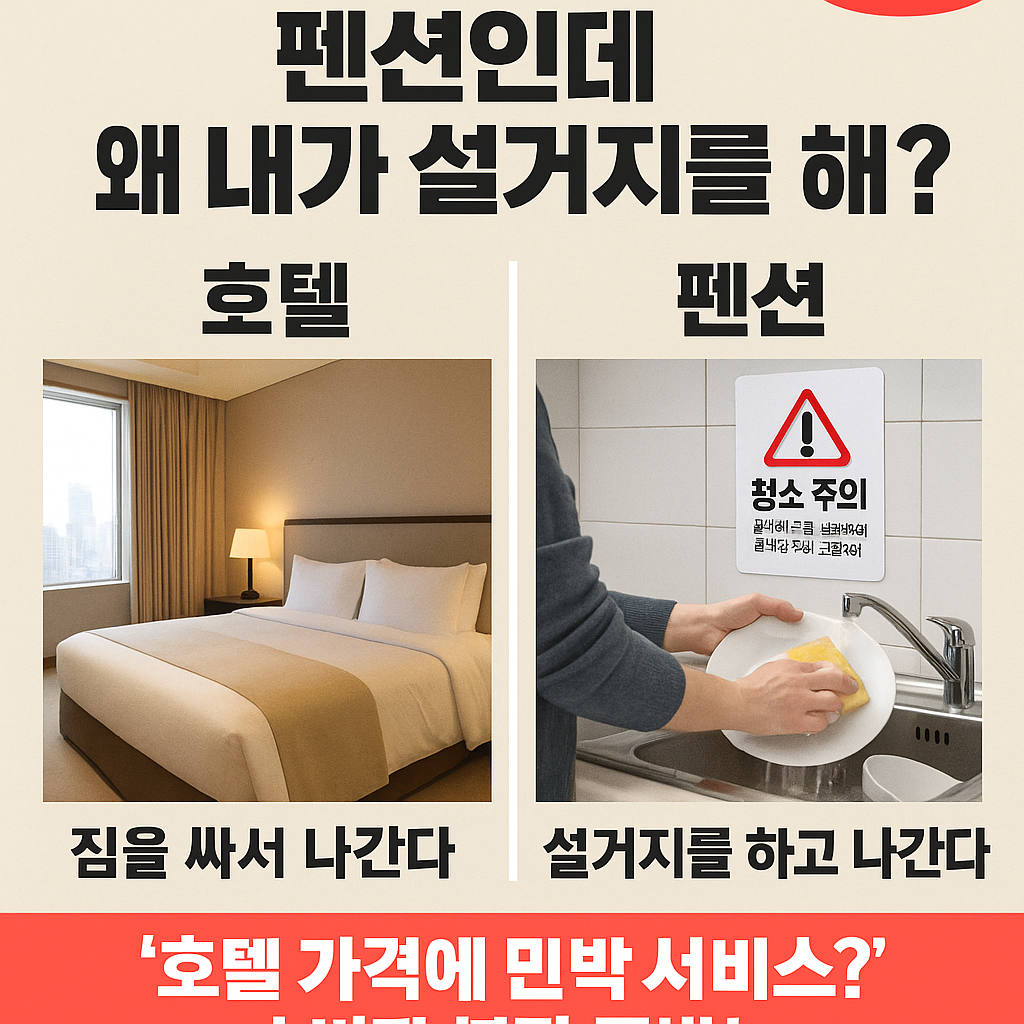 - 💎 호텔형 펜션: 요금은 높지만 서비스 완비, 청소·정리는 업주 책임