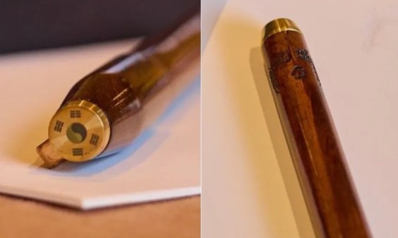 겉모습은 고급스러운 원목과 금속으로 만든 만년필 같지만, 사실 속은 굵은 유성 사인펜 심지였습니다.