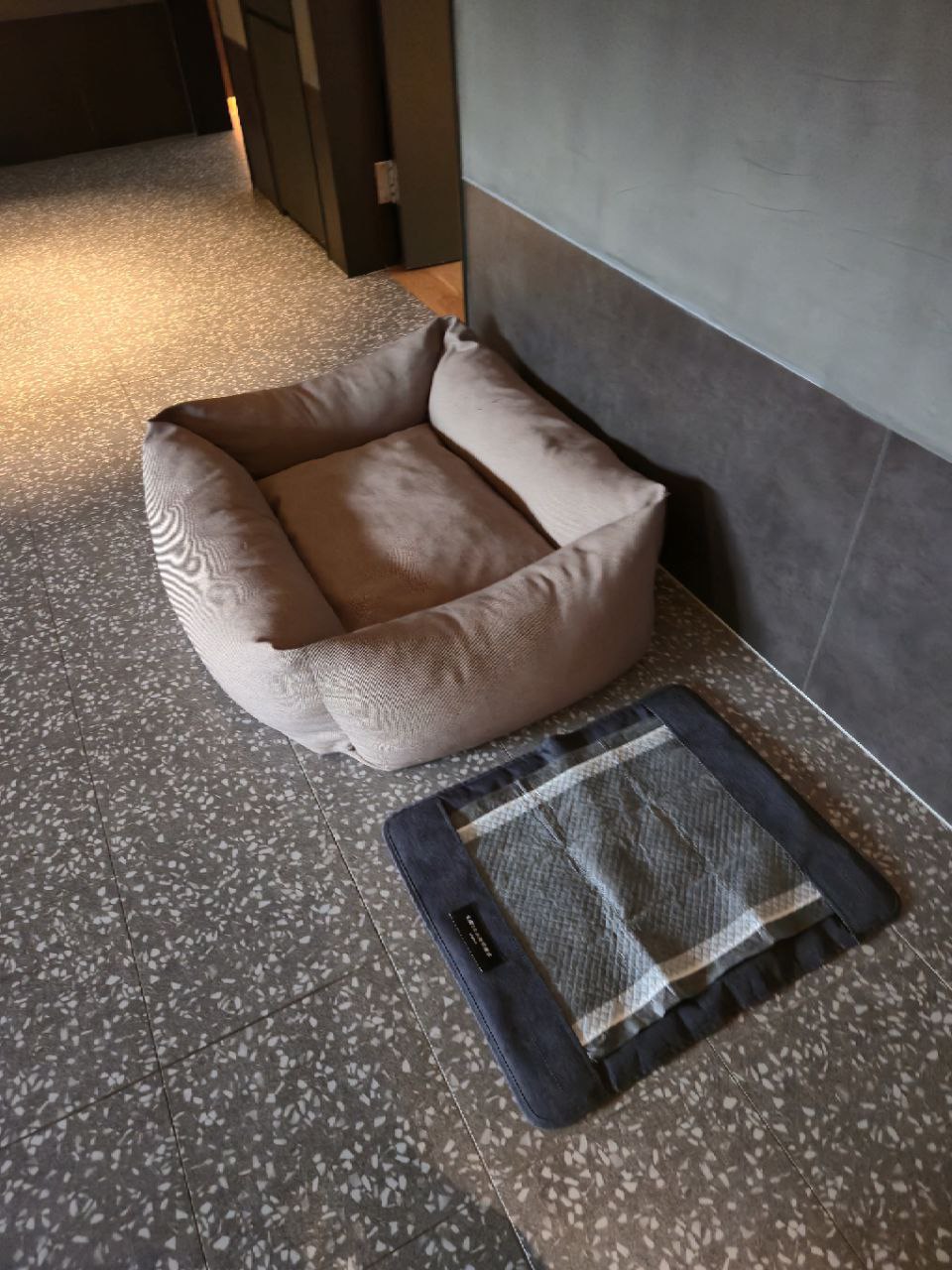 - 🐶 배변패드, 강아지 침대도 준비돼 있어서 감동🥹