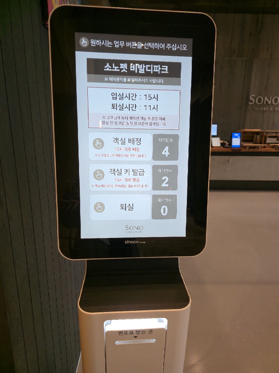 번호표 뽑고 체크인 → 반려견 체중 45kg 미만만 입실 가능!