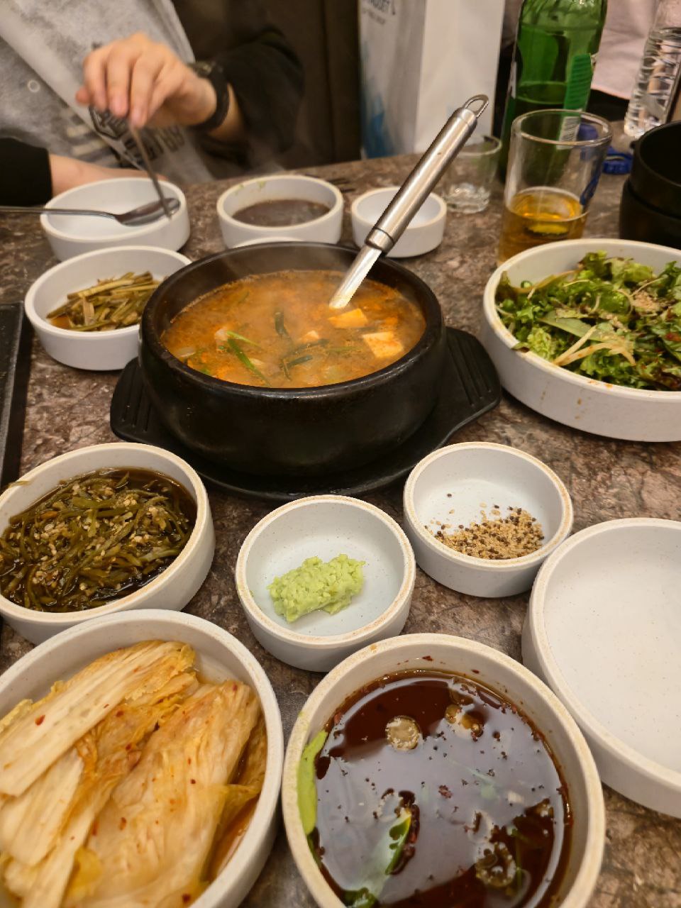 입장하자마자 삼겹뼈구이 세트를 주문! 기본 찬들도 정갈하게 세팅되었고,